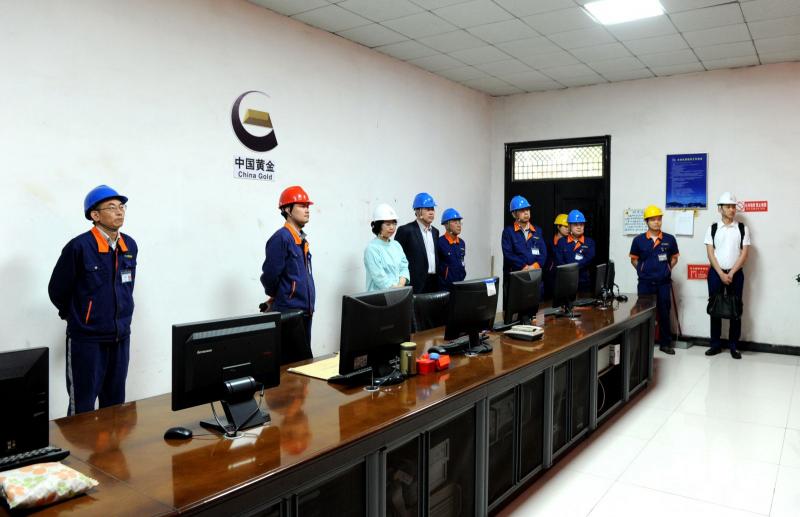 王晓梅(左三)在磨浮自动化室了解选矿工艺流程。