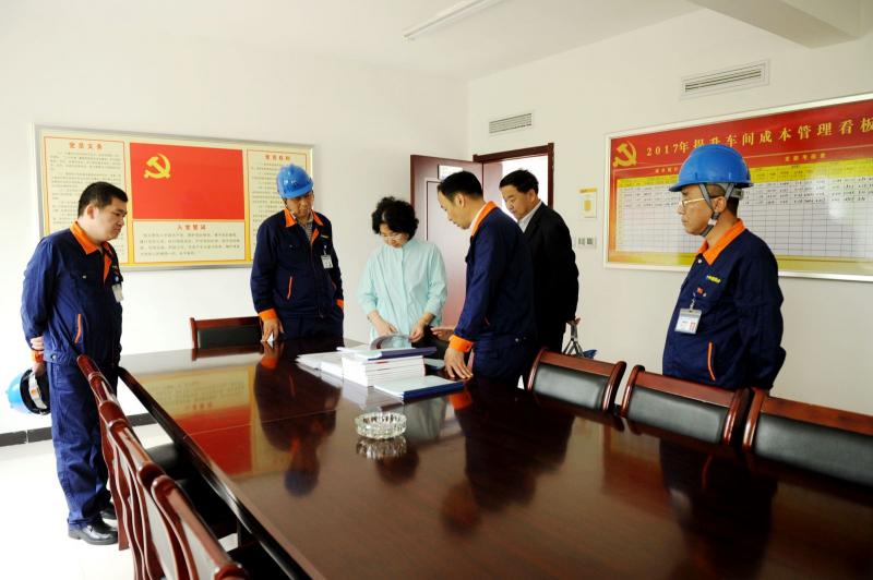 上午,王晓梅在公司领导陪同下,参观了公司新主井、磨浮自动化室、磨浮工段、脱水工段、“胡务堂创新工作室”、回水处理厂、机关二党支部党员活动室、提升车间党支部党员活动室、“丁重朋创新工作室”、调度指挥中心、展览室,了解了公司提升系统运行情况、选矿自动化工艺流程、3DMine真三维软件功能、支部党建工作的亮点、特色及开展情况,查看了公司党委及支部的党员活动记录、党建工作基础资料等,对公司自动化、信息化、数字化矿山,人才建设和管理水平给予充分肯定。