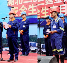 总经理助理湛若中宣读公司安全生产月活动实施方案,对安全生产月期间七项活动进行部署安排。随后,采矿车间、金诚信项目部主要负责人围绕如何落实安全生产责任制作了表态发言。