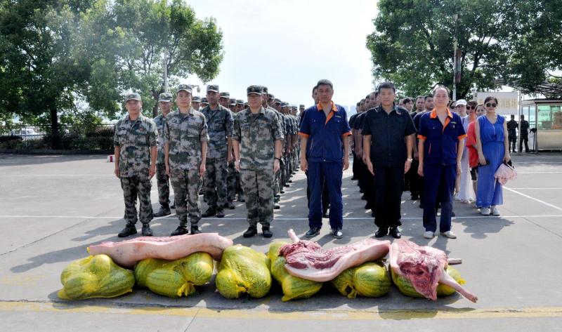 7月26日上午,在“八一”建军91周年前夕,bv1946伟德副总经理、工会主席毛怀春,率工会和其他部门及30多名退伍军人职工代表,驱车前往驻黄石舟桥旅教导队,向官兵们送上节日的祝福和问候,并赠送了西瓜、猪肉等慰问品,以实际行动爱军拥军,共话军企团结鱼水情。